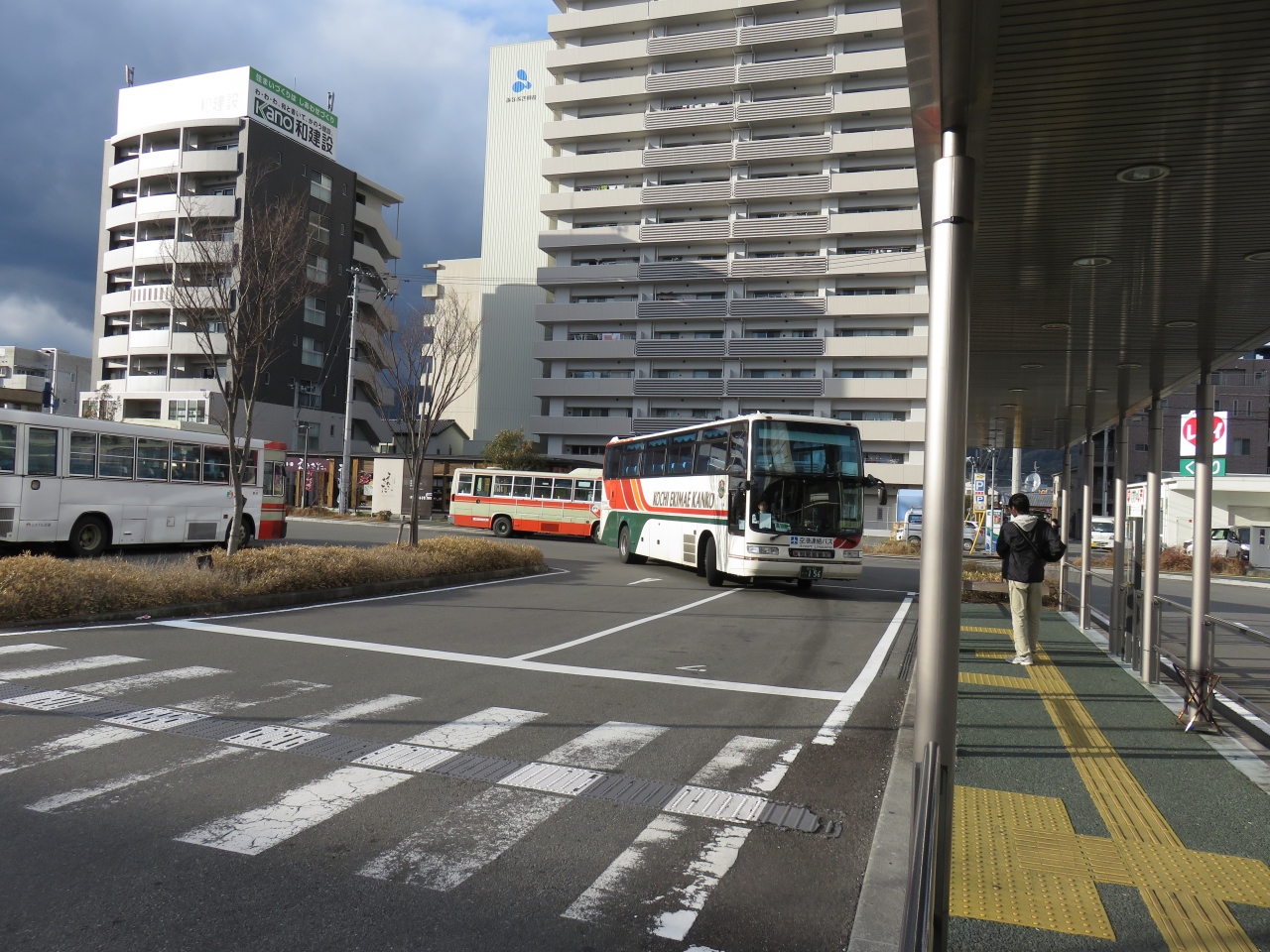 高知駅のバスターミナル以外にも、いくつかのバス停を経由して向かいます。