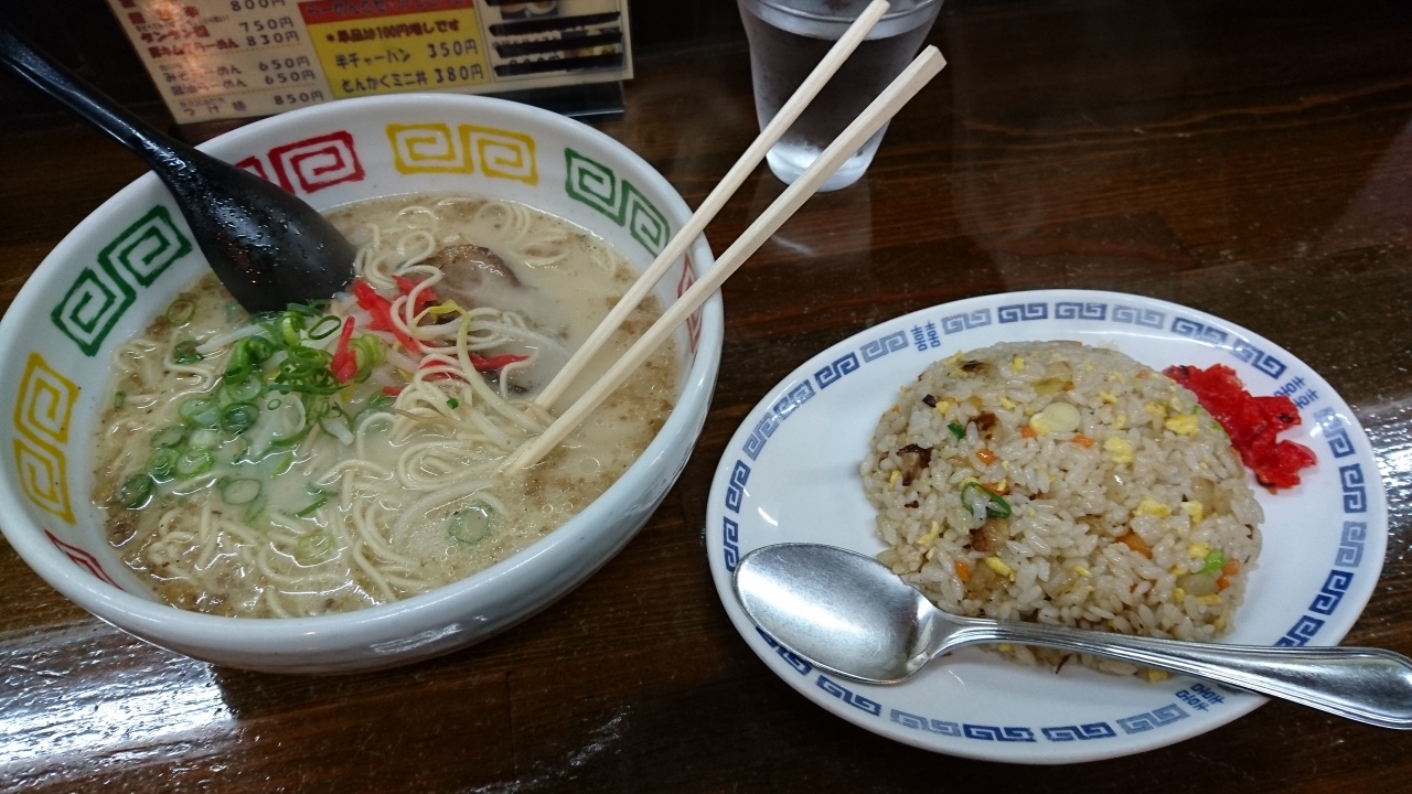 ラーメンは豚骨味で、九州の長浜ラーメンに似た感じでした。- 旅行時期