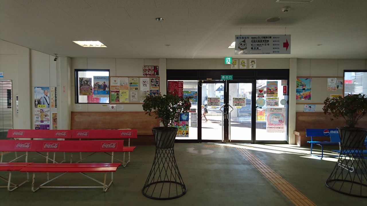土佐くろしお鉄道の無人駅です。高架になっていますので、ホームは上側になります。ここには、自動券売機が備わっていて驚きました。磁気対応タイプの切符が買えます。改札は無く、地上階とホーム階には待合室もあります。