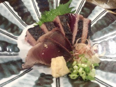 藤沢駅周辺でお店を探していたら、お店のお兄さんに声をかけられ、カツオのたたきをサービスするかと言われて入りました。