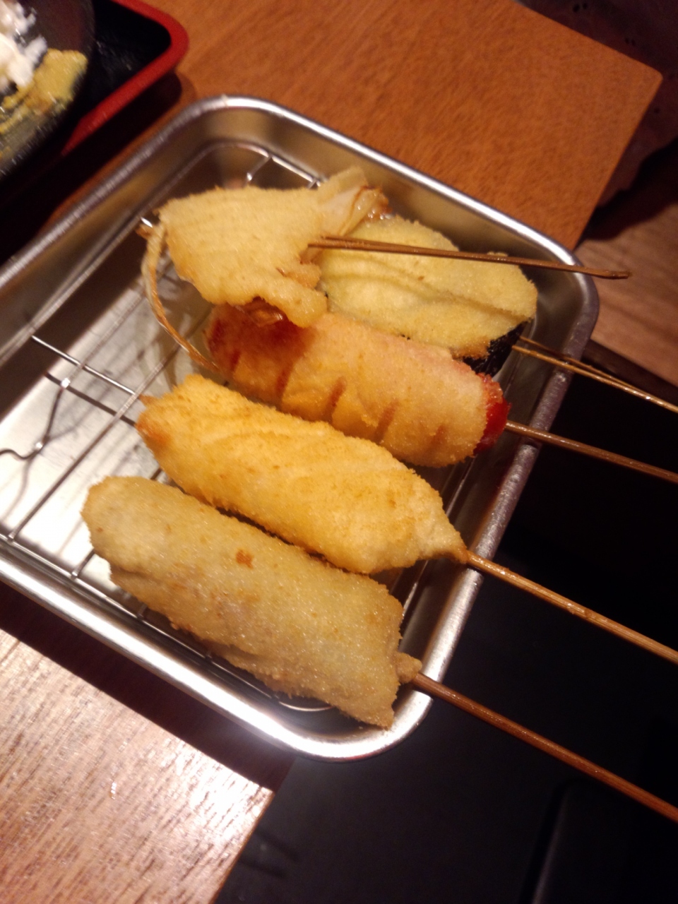 そして名物の串カツですが、薄目の衣で、オランダ産ラードで揚げてあって、美味しく頂けました。