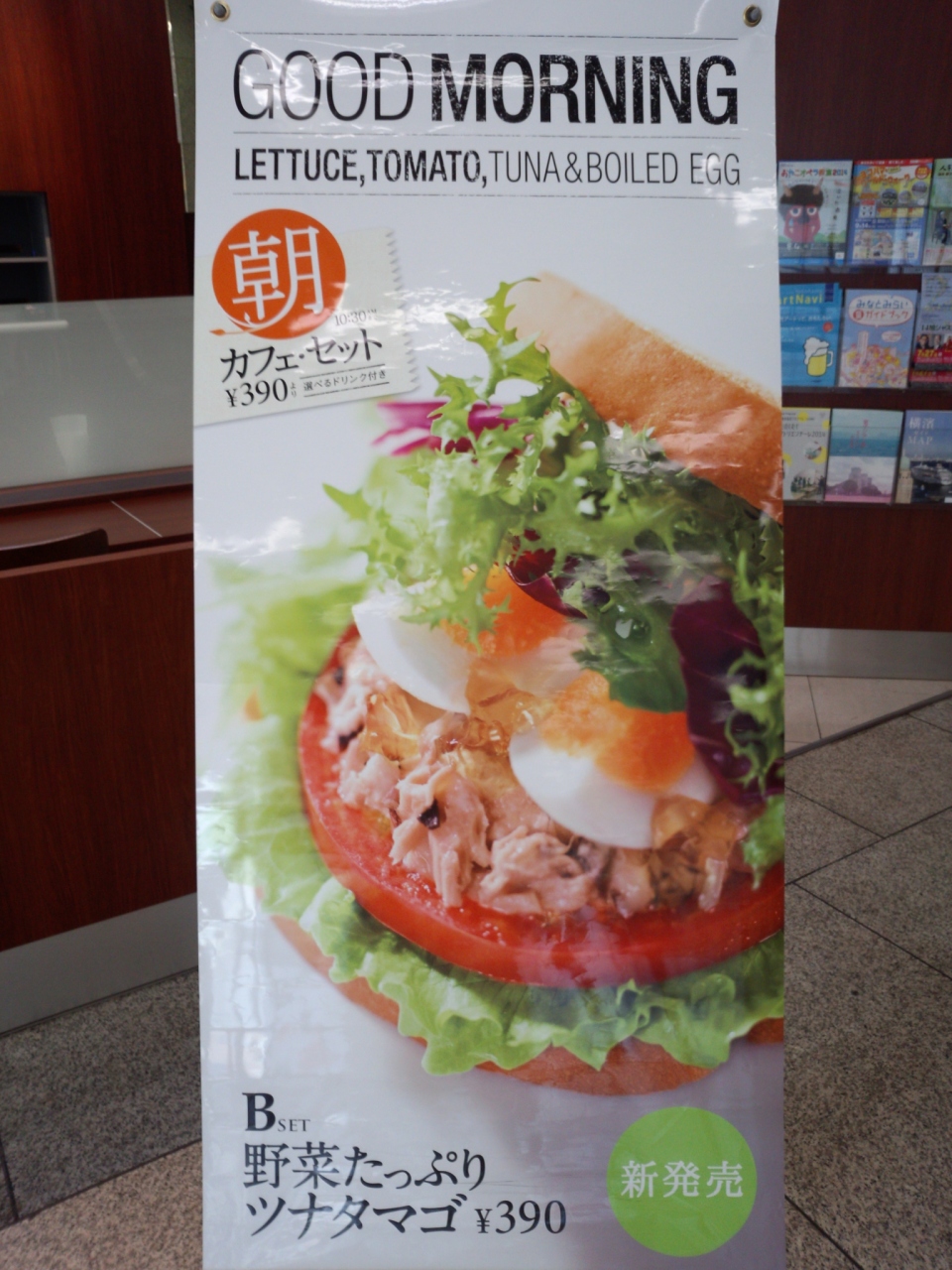 入口にはモーニングサービスの看板が出ていたので、それに釣られて入店。しかし、カウンターでもモーニングメニューを見せておきながら、10分程度時間が過ぎている事に気づきねいきなり普通のメニューを取り出してきた。