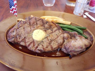 アメリカンビーフのアンガス牛のステーキを食べましたが、なかなか食べ応えもあり、焼き加減もまずまずでした。