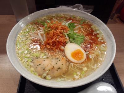 エビ塩は、エビの旨味が充分に味わえる逸品で、チャーシュー等の代わりに、えびしんじょうのような物がトッピングされていました。- 旅行時期