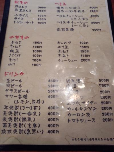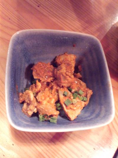 お通しも、ガツか何か、ちょっと歯ごたえのある内臓系の辛みそ味のものが出てきました。