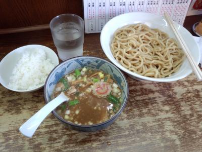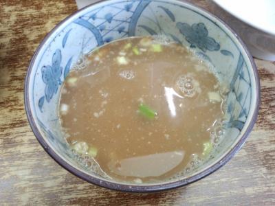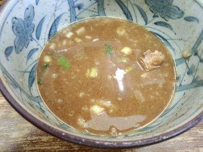 魚介系の強い濃厚な付け汁に、メンマ、角切りのチャーシュー、ネギ、ナルト等が入っていました。