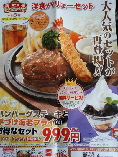メインは、予想以上に美味しく、特にエビフライは何処のファミレスよりも美味しかったと思います。