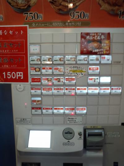 入ってすぐ、食券を購入しますが、「店内」か「持ち帰り」を選び、その後食べたいものを選びます。