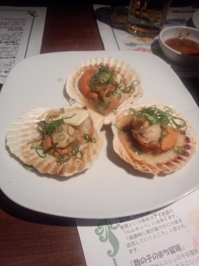 コース料理でしたが、甘エビを始め、ホッケのフィッシュアンドチップス。ホタテや地鶏など、北海道の幸を堪能できました。