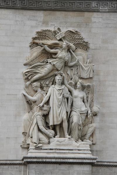 アウステルリッツの戦いに勝利した記念に、ナポレオン・ボナパルトの命によって建設が始まりましたが、ナポレオンは凱旋門が完成する前に死去しており、彼がこの門をくぐったのは1840年にパリに改葬された時だったそうです。
