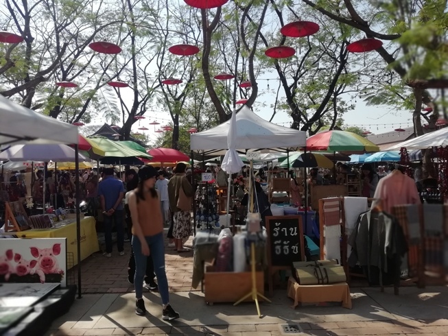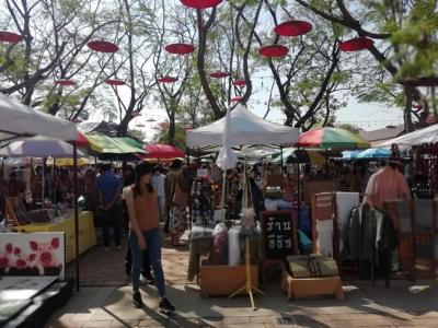 JingJai Marketのさらに北にあるLotus'sに行くことが多く、その時に若干の遠回りをしながら、よく歩いて通り抜けています。平日は、出店も客もほとんどなく、マーケット内は車も来ないし、野犬も見ないので、安全に歩ける場所です。