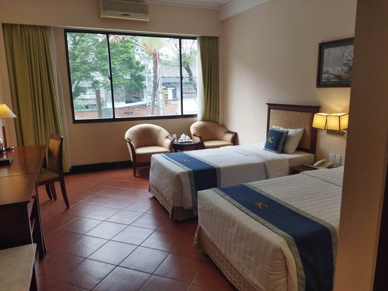 部屋のかぎはカードキーです。部屋には一通りの設備があり不便はありませんでした。懐古的な雰囲気も好みでした。ボトルの水2本も毎日もらえますし、ロビーに給水器があるので、滞在中に水を買う必要がありませんでした。ベトナムの建物なので防音は期待できません。交通音や隣室、廊下での話し声は部屋に入ってきます。