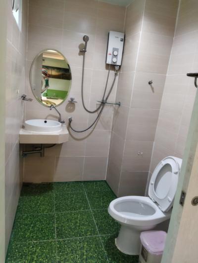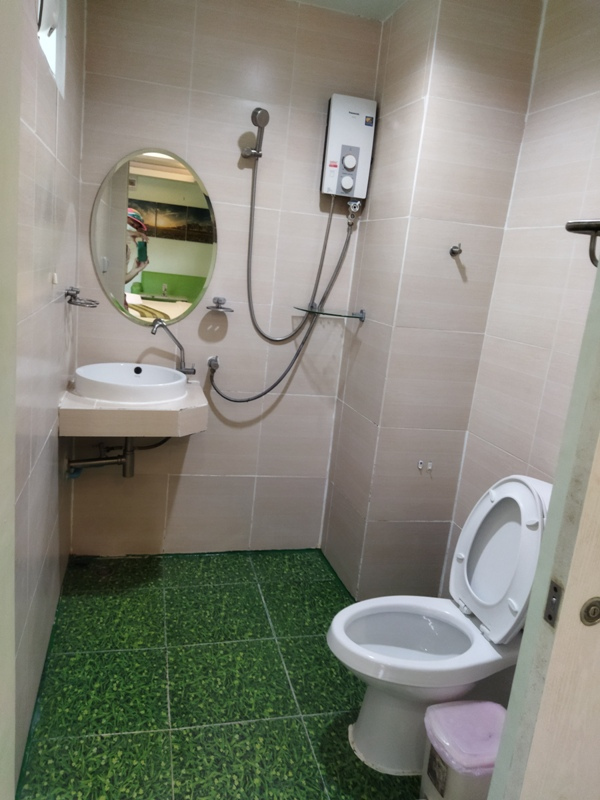 エアコンは静かで快適でした。ドライヤー、扇風機、電気ケトル、ティッシュペーパー(ざらざら)、ボトルの水、3in1のコーヒー、はす茶、歯ブラシ、石鹸、シャワーキャップ、櫛があります。小さいボトルのシャンプーとボディソープもありますが、ボトルがボコボコだったので、何度も詰め替えて使われているようです。
