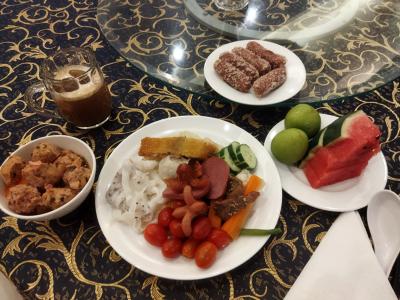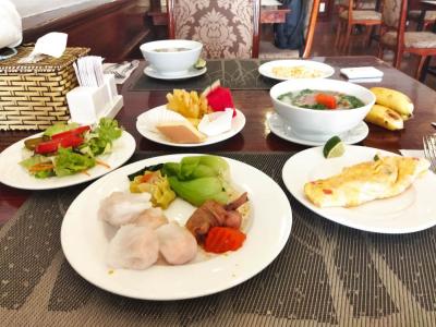 朝食はビュッフェですが、客の少ないときはメイン料理がメニュー選択になります。おかずとフルーツは毎日変わりますが、日によって唐揚げ2種類だったり、辛いものばかりだったりとおかずの内容が被ります。味は良いです。宿泊客数に比べて、朝食をとる客は少ない印象です。- 旅行時期