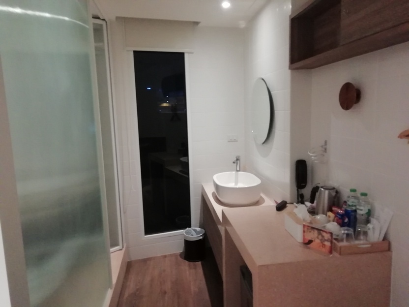 シャワーのお湯の出もよかったですが、バスタブはあるものの台湾のホテルなので、シャワーカーテンがなく、立ったままシャワーを浴びると浴室が水浸しになります。