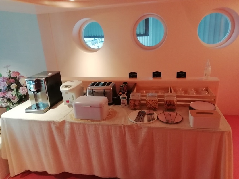 コーヒー紅茶と電気湯沸かし器がありました。無料WiFiも使えました。