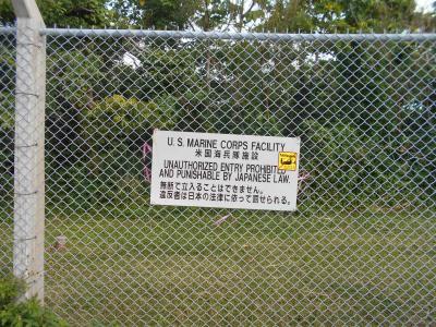 展示作品の素晴らしさもさることながら、注目すべきはこの美術館のある周辺の環境である。美術館に相応しくないとみる向きもあるかも知れないが、米軍基地のフェンスに囲まれ(写真参照)、軍用機が低空飛行で飛び交う場所にあるからこそ丸木夫妻の作品が生きていると言えるのではないだろうか。基地移転問題が県と国の間で重大な争点となっている今、ここを訪れればこの問題が沖縄だけでなく日本全体の問題として捉えられるべきであることが理解できる。