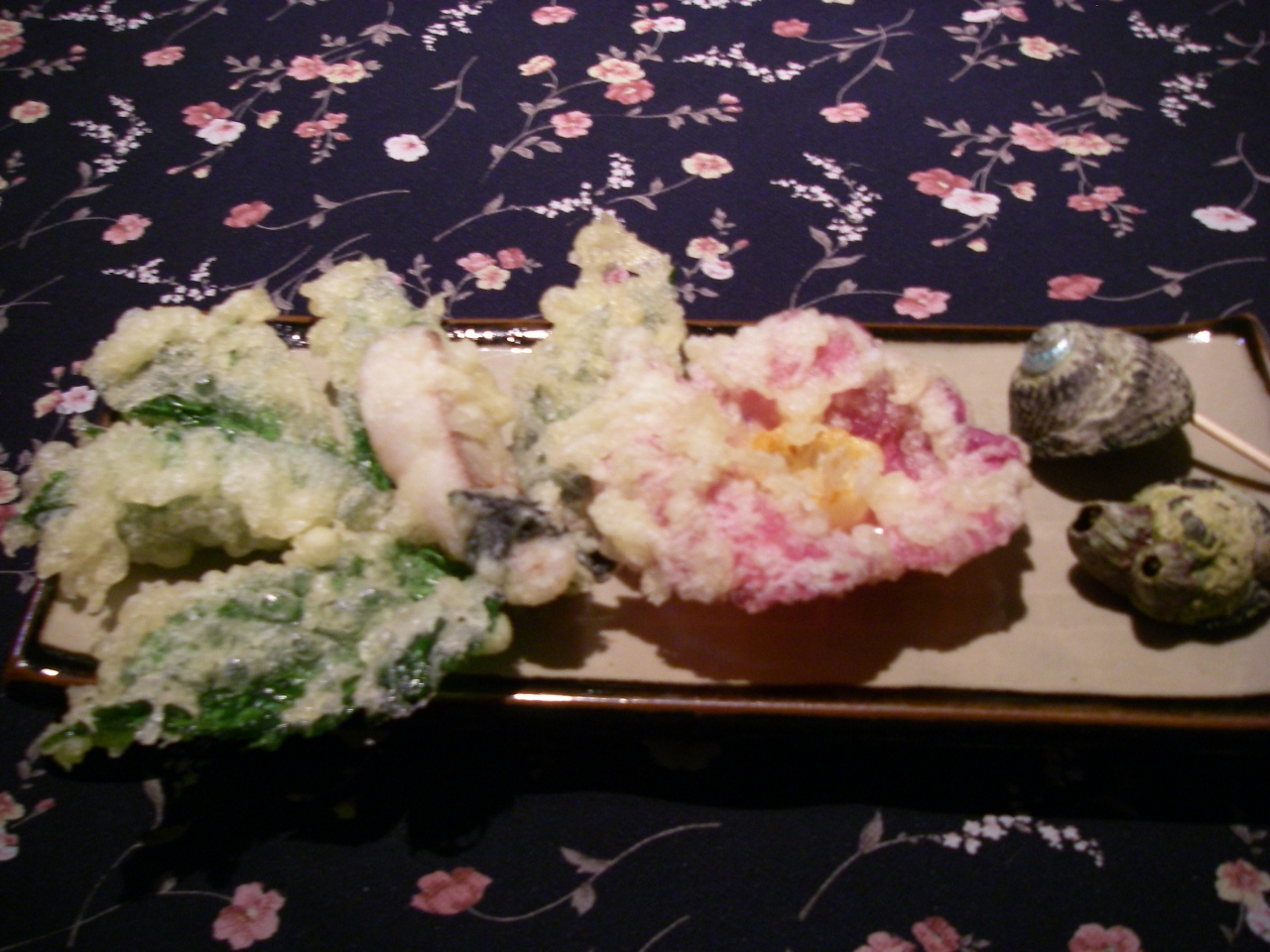 明日葉・椿・新鮮な魚介がメインの夕食で、特になまこをお刺身で食べたのは初めてでした。リピートした時にはメニューを変えてくださるそうです。