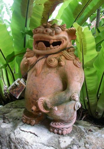 やちむんの里の一番奥に位置している「ギャラリー喫茶 まらなた」は、周辺の金城一門の作品を中心にたくさんの作家さんの品が並べられています。いつも相手をしてくださるおば様方が、たいへん親切。予算にあったものを探してくれるし、相談によく乗ってくれます。また決して無理に押しつけるようなことはしません。欲しい形のシーサーがなくて妥協しようとしたお客さんに「シーサーは出会いがあるから、これと思う物がなかったら買ってはだめ」と言っているのを聞いた事もあります。それに価格が安いのがとてもうれしい。町のお土産やさんに出たら、同じ物がずっと高くなります。「窯まで来てくださった方にはお安くという考えです」とおっしゃっていました。隣接の喫茶でいただく食事もおいしくて安いです。もずくそばにニガナの小鉢やらデザート・飲み物が付いた物を千円でいただきました。点在する金城一門やガラス工房「虹」を覗いた後、ここで一服。本島に行くたびに寄っています。