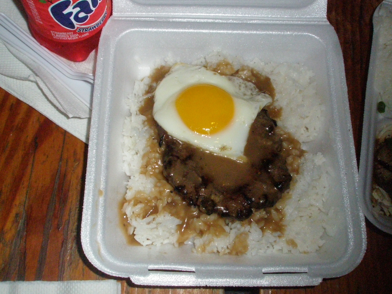 PM8時頃夕食用に「ロコモコ」と「わさび醤油アヒステーキ」のプレートランチを購入。店の前のテーブルで4人でシェアして頂きました。スコーンが有名のようですが、さすがにこの時間では売り切れていて断念。 翌朝9時頃にいくと、たくさんのスコーンも並んでいました。
