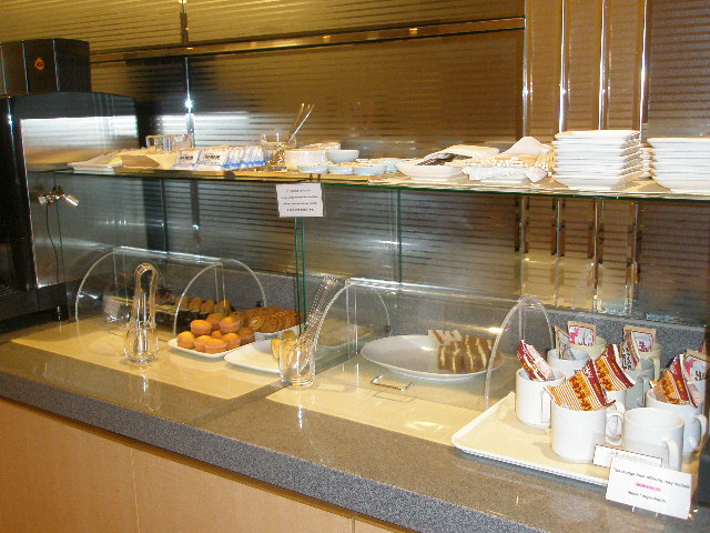 ファーストクラス専用のセキュリティゲートから直で入れますので一般の人との差別化はされていますが、肝心のラウンジはサクララウンジと比べてもパンがあるくらいで、それ以外はたいして変わり映えしません。- 旅行時期