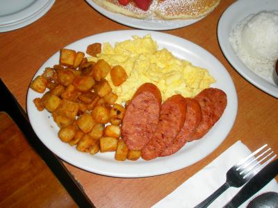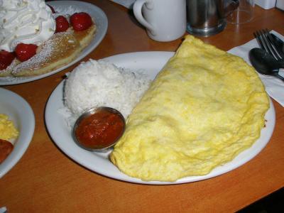 家族4人で、「パンケーキ」、「スクランブルエッグ」、「オムレツ」を注文。