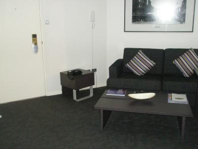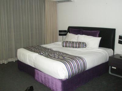 キングサイズベットルームに宿泊。 部屋内は十分に広く、キッチン付で大型冷蔵庫、オーブン、電子レンジ、トースター、ポット、食器類完備。 近くにスーパーもあるので、そこで食材を調達すれば簡単な調理もできて、物価の高いシドニーでの長期滞在に重宝しました。