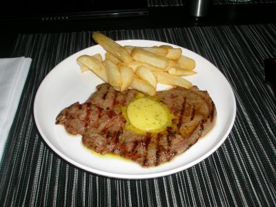 ステーキは比較的軟らかくおいしかったですが、うどんはチャーシュー麺のうどん版といった感じで日本人としては満足できませんでした。