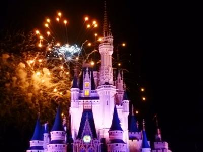 シンデレラ城で迫力のある花火が見れます。シンデレラ城もライトアップされているので、とても幻想的です。日本ほど混まないので、時間ぎりぎりでも割と近くの正面から見ることができました。でも、お城と花火が写真に全部映りきらなったので、別日に少し離れた所から鑑賞。カメラを除きながら場所を決めてもいいかもしれません。