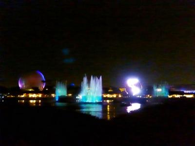 エプコットのシンボルです。乗り物に乗るとタッチパネルで色々な質問に答えていき(日本語)、写真も撮られ、最後には・・・回答を元に自分の未来予想の動画が作られます。後でメールで動画を送れます。いい思い出になりました。