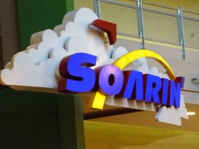 小さな乗り物に乗って町中を空の上から眺めるようなアトラクションです。日本とほとんど同じように感じました。本当に空を飛んでいるような気持ちになれて、とても好きです。回りのアトラクションに比べて、いつも混んでいましたので、人気があるようでした。