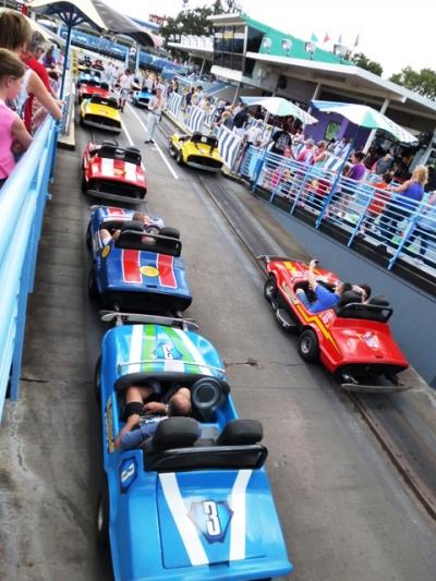 ディズニーランドにもある、下にレールの入っているゴーカートです。作りはほぼ同じでしたので、英語がよく分からなくてもなんとなく乗ることができます。家族連れが多かったので、意外と並びました。あっという間に終わってしまいますが、自分で操作出来、楽しいです。
