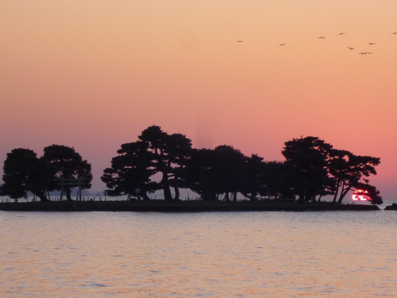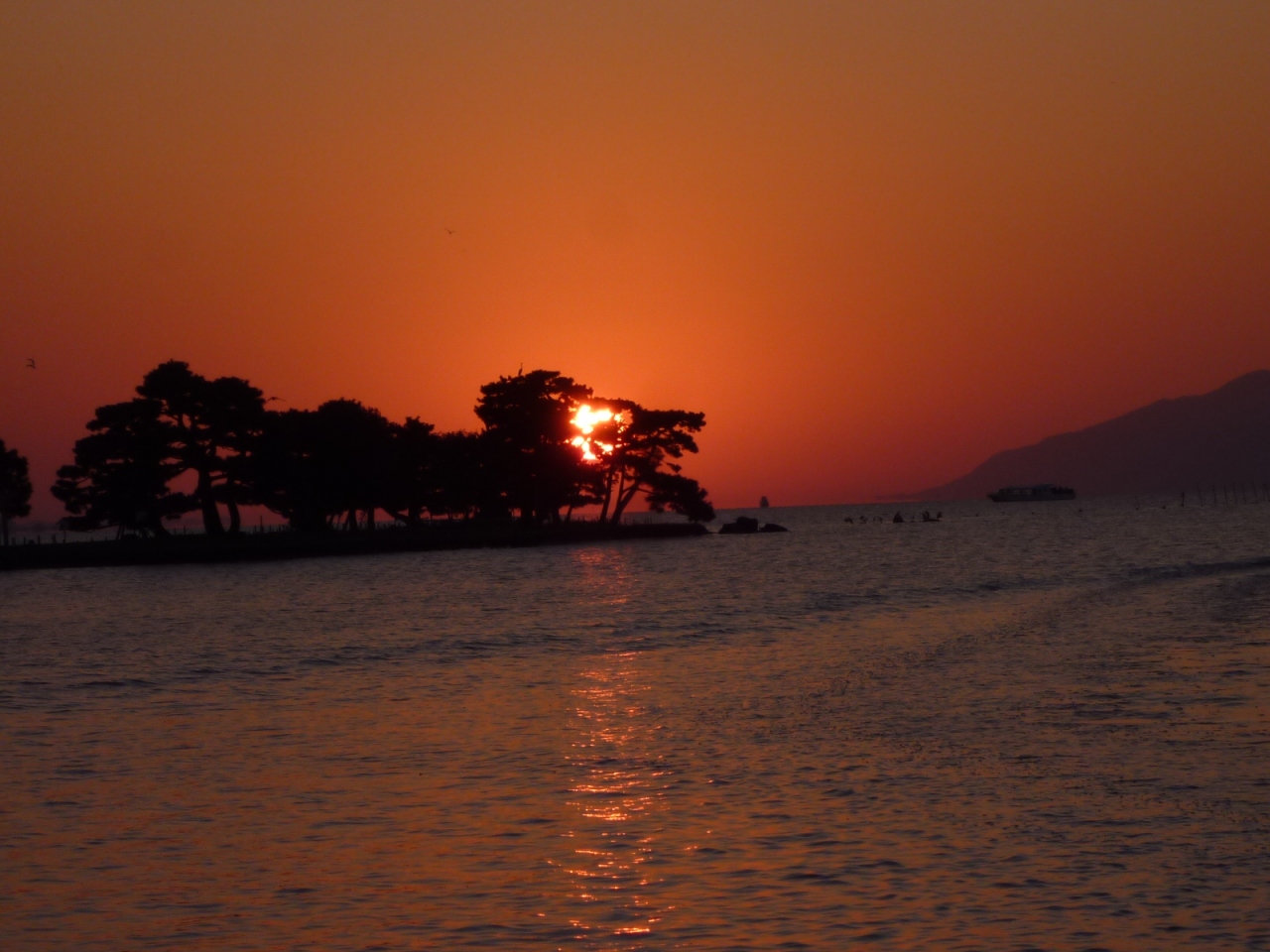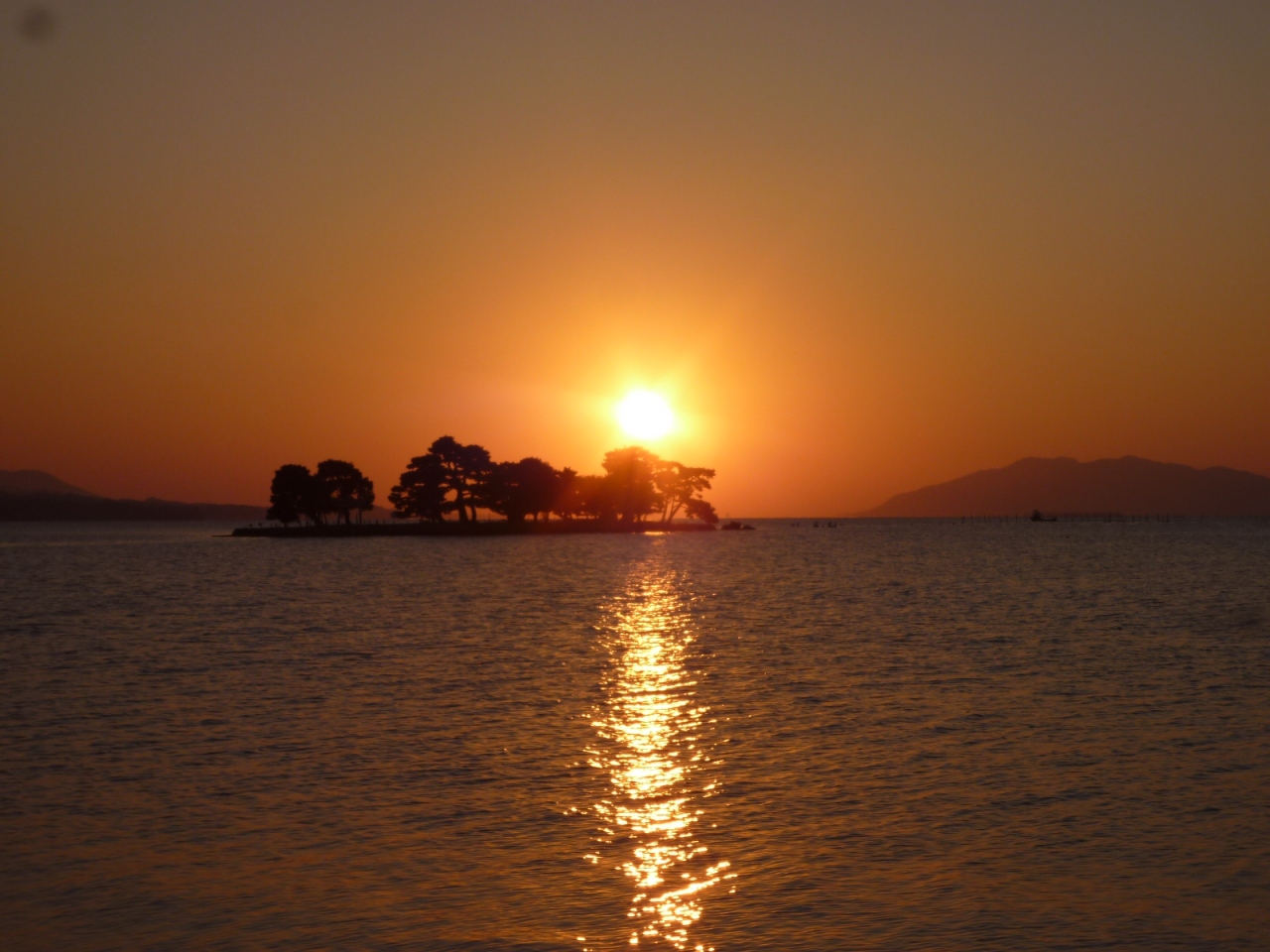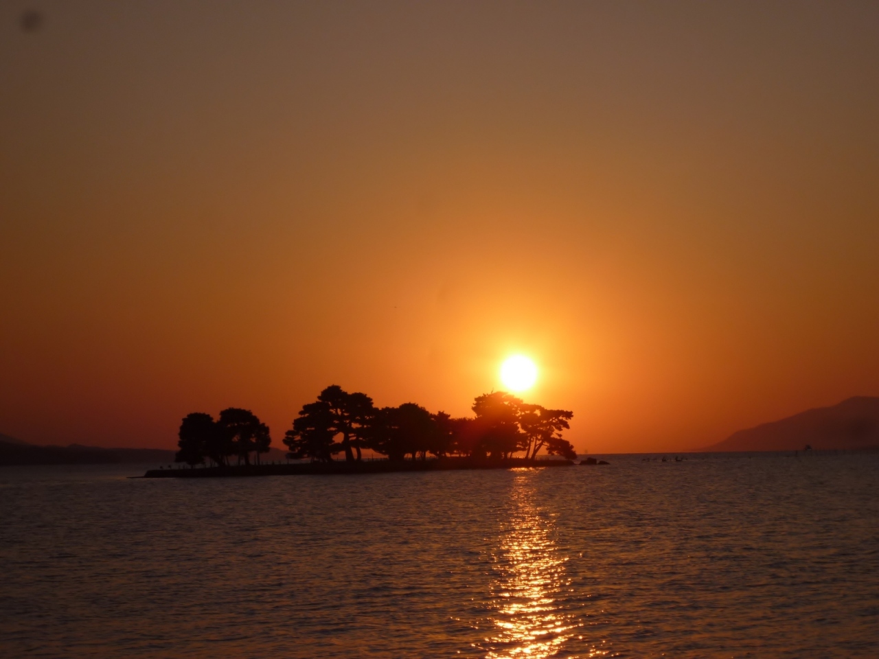 松江駅から徒歩約10分と聞いて、夕日のスポットである白潟公園に行きましたが、夕日の美しさに見とれ、そこからさらに10分以上の県立美術館前まで、歩いてしまいました。その日は晴れていて、夕日が島の向こうに沈むまで堪能できました。素人の私でもカレンダーに載っているような景色が撮れ最高でした。