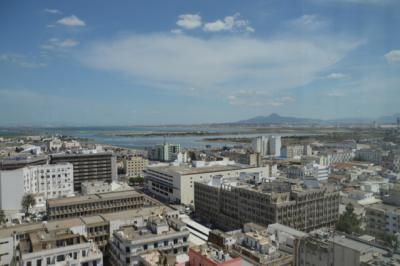 部屋からの見晴らし。チュニスはチュニス湖西湾に面している。