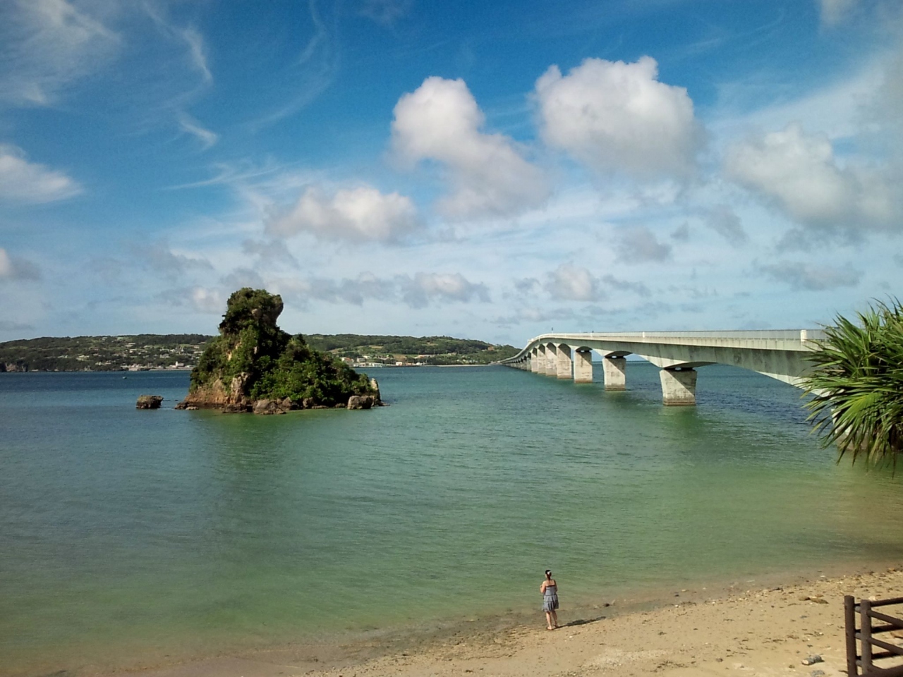 沖縄本島北部の屋我地島と古宇利島を結ぶ海上を渡る橋。