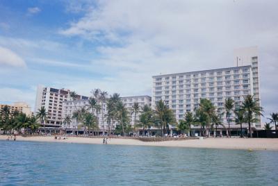 タモン湾のほぼ中央に位置しているので天気のよい日には部屋の窓全体に青い海と抜けるような空が広がります。