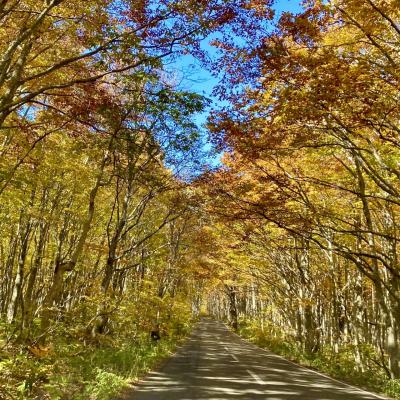 10:44 八甲田に向かって登るにつれて、ブナ林が黄金色に輝いてきまし...