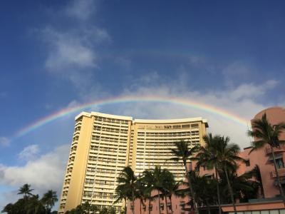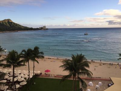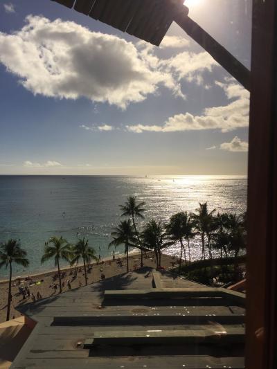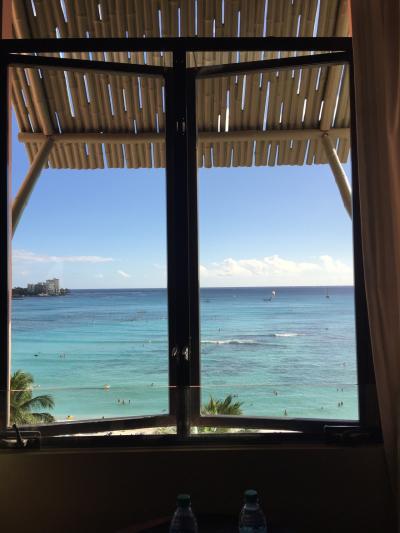 ロイヤルハワイアンに宿泊。部屋の窓は小さめだけど、目の前にはワイキキビ...