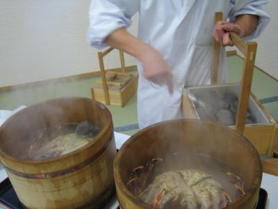 カニ、イクラなど北海道グルメを豪快に食べられます。お部屋で生きたタラバカニを桶に入れ焼石で豪快に茹で上げ!迫力満点です。