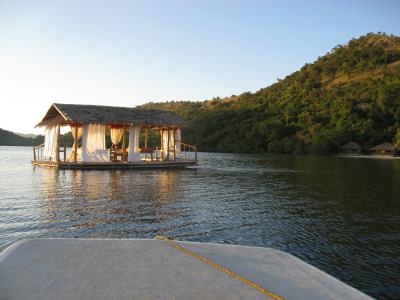 コロン(ブスアンガ)空港から車で船着場に移動して、ボートに乗ってホテルに移動します。