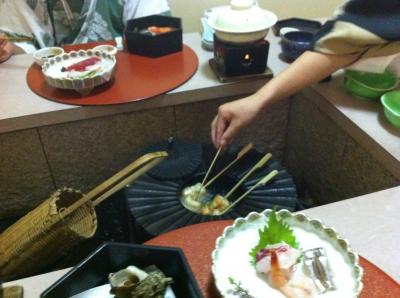 仲居さんが目の前でほくほくのさつま揚げを揚げてくれます。