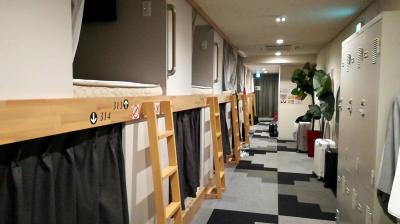 キャリーケースのような大きな荷物は通路の端などに置いている人が多いので、荷物が多くても大丈夫です。ひとたびドミトリールームの中へ入ってしまえば、安っぽい感じはなく、落ち着いた居心地の良い空間になっています。3〜5階はワンフロアに二段ベッドが15台あり、MAX30名なのでけっこう人がいるなという印象ですが、うるさい感じはなく、かえって人がいるので安心できる感じです。場所柄か客層は外国人の方が多いですが、皆さんきちんとルールを守っていて、室内での私語や迷惑行為をしている人はいなかったので快適に過ごせました。