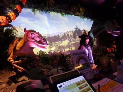 世界初・ロボットが接客するホテルとして、ギネスにも認定された変なホテルですが、東京羽田ではフロントに3体のロボットがいて、そのうち2体はお馴染みの恐竜たちです。恐竜の前に立つと自動音声が流れ、音声にしたがってカウンター前のタブレットを操作してチェックイン、マシーンからルームカードキーを受け取ります。ただ、途中で上手くいかずトラブった時や、ロボットだけで対応できない場合に備え、コンシェルジュデスクに本物の人間スタッフもいましたので、とりあえずは安心です。