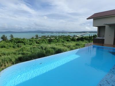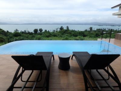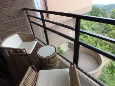 さてそんななかなかのお値段ではありましたが、残念ながらお部屋のほうは、ボトム部屋ということもあってか角度が悪く、バルコニーも狭く、左側の視界は建物の壁で遮られていますし、海も遠くてあまりきちんとしたオーシャンビューという感じではありません。お部屋は狭いなりにもそれなりにきれいに整ってはいますが、面白みのある感じではなく、あんまり寛げる感じでもありませんでした。お部屋の露天風呂もとても狭いです。