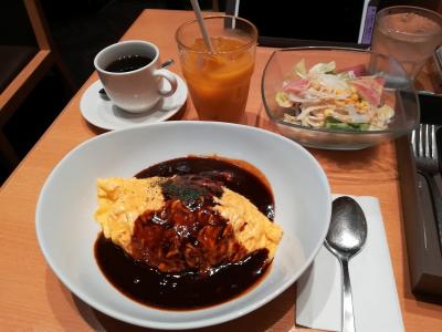 オーダーはテーブル上のタブレットでするところがとっても令和21世紀です。「クラシックオムライス」税込み990円とランチサラダ(220円)、マンゴージュース(440円)とコーヒー(200円)の4点で合計1,850円の豪華ランチでしたけど、いま顎関節症がつらくて耳のほうまで痛くなっちゃって大変な時期なので、そんな自分を少しでもいたわってあげようと贅沢しました。。