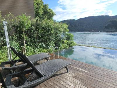 貸切利用した大浴場の深湯はまあまあ良かったですが、立地自体が悪いせいか、目の前に大きな山があって海のほうの景色を遮られてしまってるので、微妙なストレスを感じました。食事は、夜はカジュアルフレンチのコースでしたが、味のほうもカジュアルな感じで高級感はさほど感じられませんでした。いま一歩、全体的に味が足りない感じです。東棟の奥にあるベーカリーも利用しましたが、そこのパンも味が薄くて美味しいとは感じませんでした。