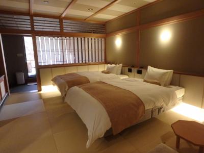 そんな中、今回予約したのは2022年11月にリニューアルされた、「登竜館」1階の露天風呂付き客室でツインベッドのお部屋(55平米)でした。室内はセンス良くリニューアルされ、とても心安らぐ色合いで落ち着けました。冷蔵庫は2台あり、そのうち1台の中にはワイン(有料)が沢山入っていて、ピカピカのワイングラスも沢山。電子レンジやテレビも大きく最新型で使い勝手良くまとめられており、浴衣や間接照明、ひとつひとつの家具も大変センス良く、使い手への配慮が施されていて、まったくストレスを感じさせませんでした。