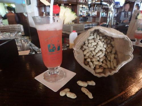 でも私はお酒がほとんど飲めないので、ノンアルの「Virgin Singapore Sling」をオーダー。単なる甘いジュースでしたが、まあ味はこんなもんかと分かったので、とりあえず満足。カウンターの足元に、ピーナッツの殻もポイポイと落としてきました。