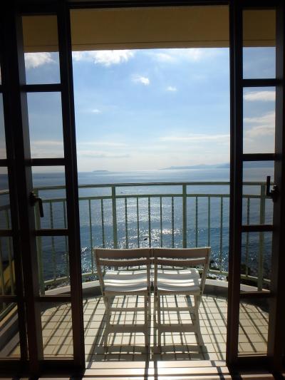 全客室が海に面しているので、お部屋のバルコニーからは、遮るものの何もない相模湾の絶景を独り占めできます。各バルコニーには白いチェアが2脚ずつ置いてあり、ここに座って海を眺めている時間はまさに至福のひととき。お部屋のタイプによっては、若干視界の一部が遮られる場合もあるようですが、3階以上の高層階であれば問題はありません。