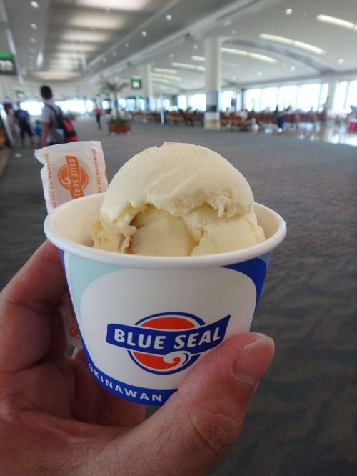 前回の沖縄旅行の帰り、那覇空港のゲート前ショップにて、ブルーシールアイスを真っ白なカップで出され、がっかりしてしまった経験のある私は、今回、同じ過ちを繰り返すまいと、入念にチェックし、ロゴマーク入りのカップで出してくれるのは、「22番ゲート前」のBLUE SKYであることを突き止めました!